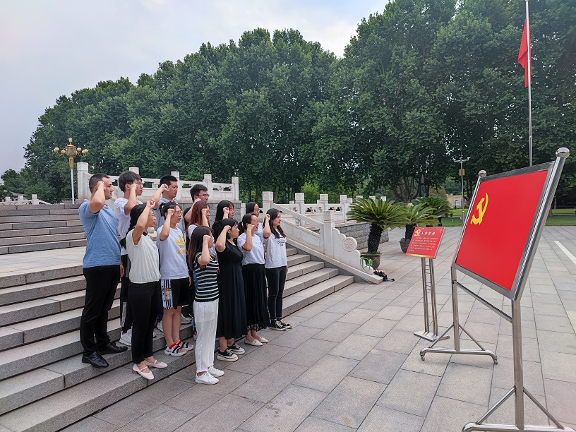 在神圣的革命烈士纪念碑前,党员同志举行了悼念活动,深切缅怀为祖国和平统一、民族独立解放英勇牺牲的烈士们。支部书记刘玲会同志带领党员同志重温入党誓词,再次领会党的精神与初心。