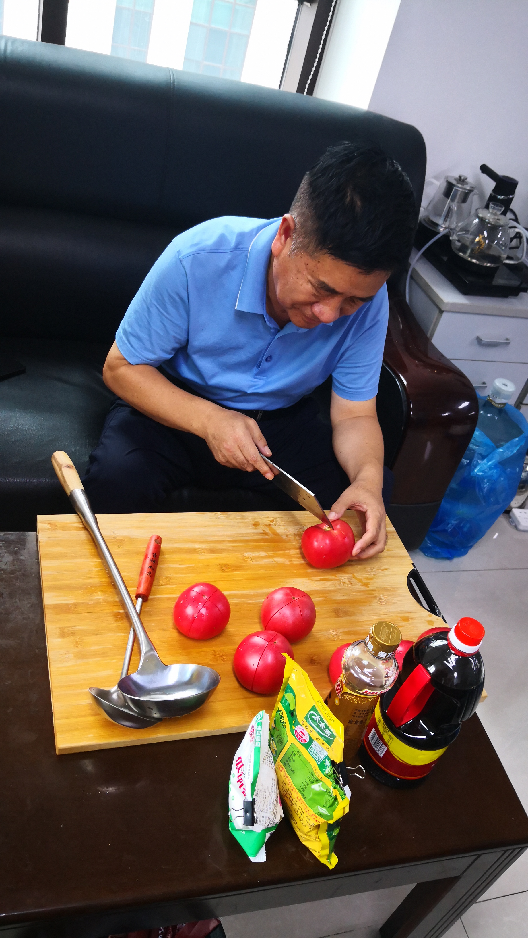 中秋佳节来临之际,老领导专门准备了黄庄月饼,做了紫菜蛋花汤,为