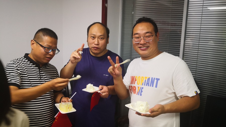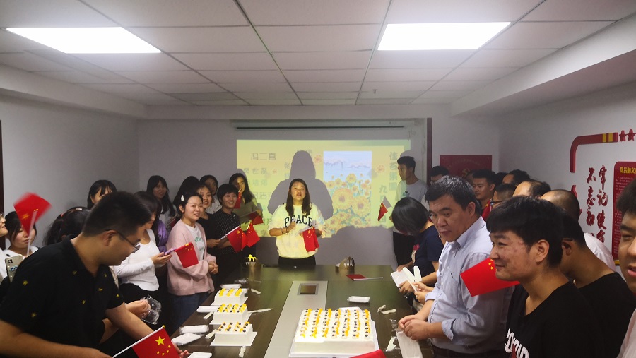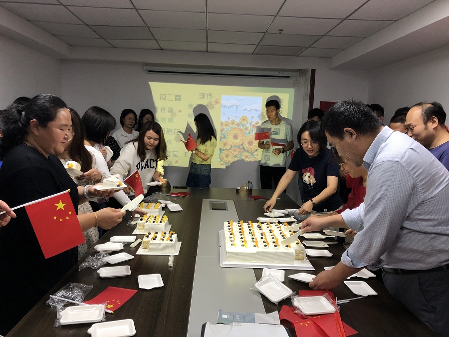 我集团于金色九月的最后一个工作日,举办了共祝祖国生日暨九月生日会活动,大家为办公区插上鲜艳的国旗,映着香甜的生日蛋糕,一起为祖国母亲庆祝七十二周年华诞!祝福国泰民安!祝福人民富强!祝福佳石集团蒸蒸日上!